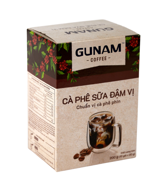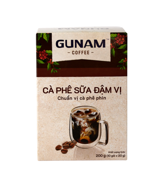 Cà phê sữa đậm vị GUNAM lấy cảm hứng sáng tạo từ công thức cà phê sữa đá truyền thống kết hợp với VỊ ĐẮNG của cà phê, cho ra đời dòng sản phẩm với vị cà phê nhiều hơn vị sữa, mang đến cho bạn hương vị đậm đà nổi bật gu cà phê khác biệt giữa vị cà phê và vị sữa.