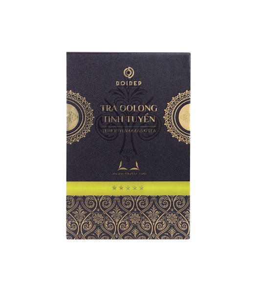 Trà Oolong Tinh Tuyển dạng hộp là sự kết hợp hoàn hảo của những búp chè Xuân Mới và chè Kim Tuyên. Oolong Tinh Tuyển cho hương tươi mới, ngọt nhẹ như hoa lài, không ngào ngạt choáng ngợp, mà dai dẳng, vấn vương mãi trong không khí.